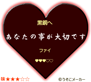 先日Yさんがくれた某うそこさいとのおあそびネタ(http://usokomaker.com/valentine/)が面白かったので、らさっそくオタク的に黒ファイでやってみました笑笑笑